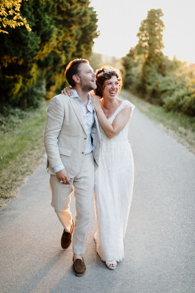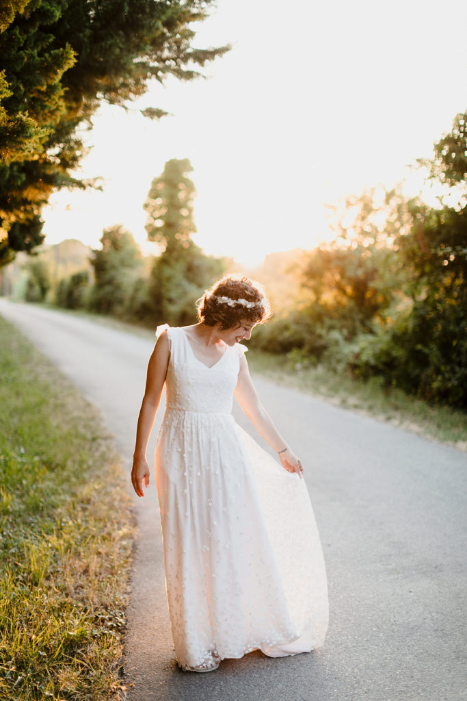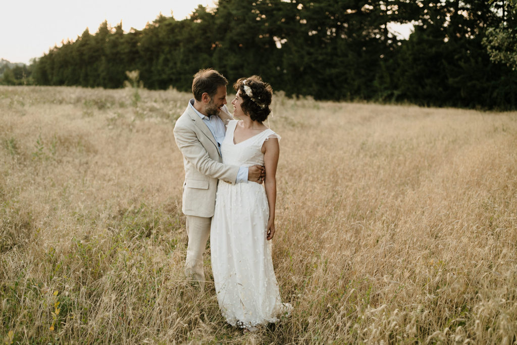 Venus de Londres pour se marier en Provence, au son des cigales. Cette lumière particulière du mois de juillet, et une mariée rayonnante !